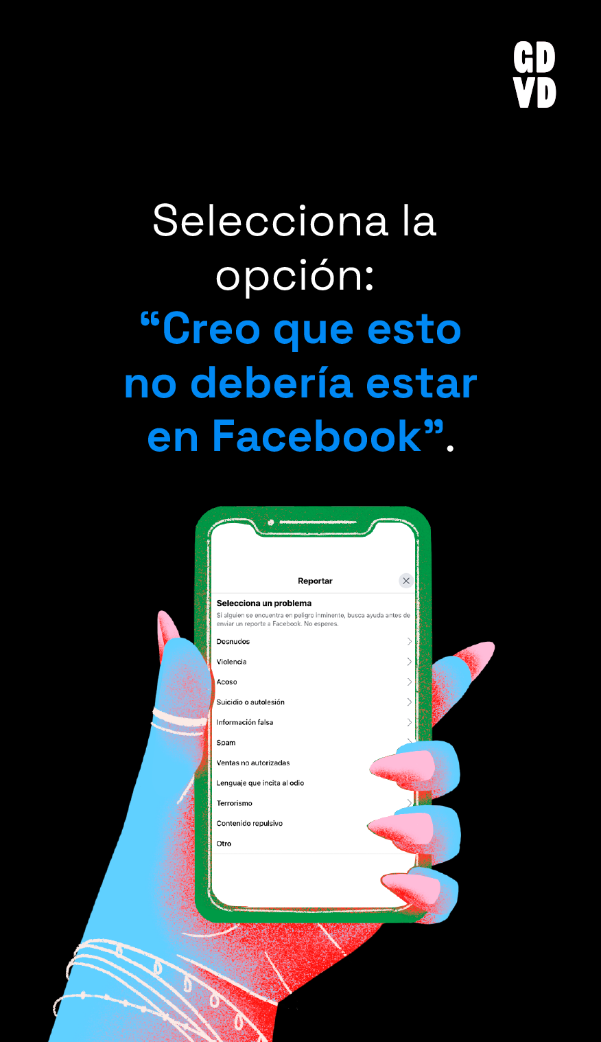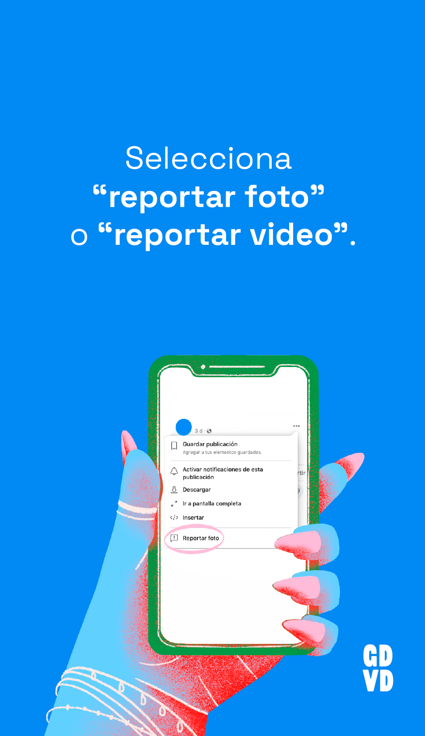 Puedes reportar perfiles, publicaciones, publicaciones en tu biografía, fotos y videos, mensajes, páginas, grupos, eventos, comentarios y anuncios.