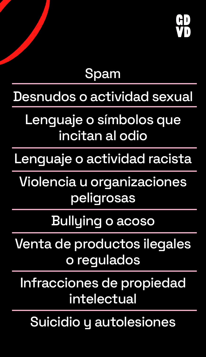 La plataforma retira cualquier contenido que incluya amenazas creíbles o lenguaje que incite al odio, contenido dirigido a humillar o avergonzar a los usuarios, información personal utilizada para chantajear o acosar a alguien y mensajes reiterados no deseados.